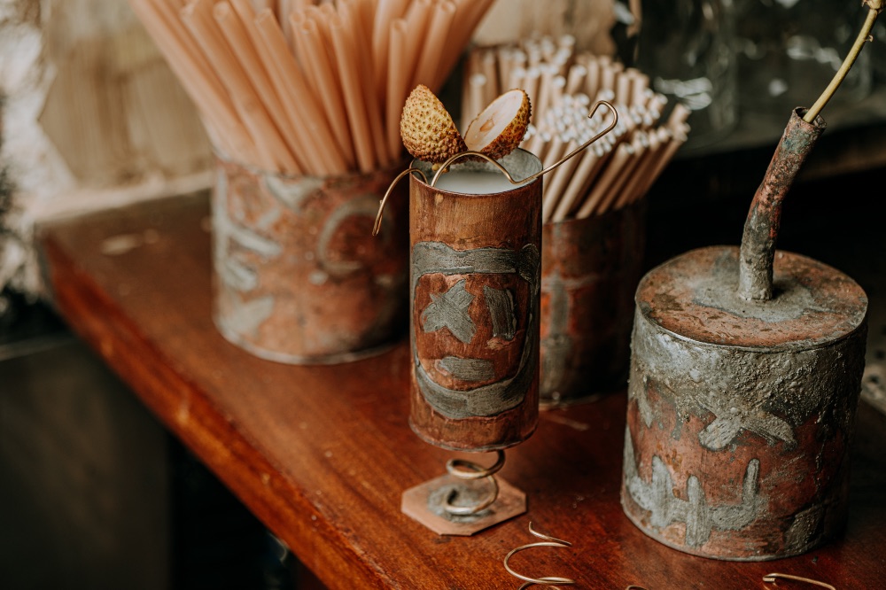 El Bestiari es uno de esos lugares en los que nada está dejado al azar. Desde la vajilla hasta las lámparas o los detalles decorativos, todo respira coherencia estética y cariño por lo hecho a mano. Además de ir a tomar algo, puedes apuntarte a alguno de sus talleres de coctelería o de creación de vajilla artesanal. Me contaron que tienen mucho éxito, sobre todo por el trabajo con cobre, un material que no se ve a menudo y que aquí se convierte en auténtico protagonista.