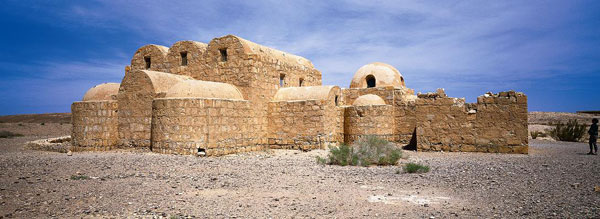 El de Qusair Amra es uno de los monumentos mejor conservados y el más bonito de los castillos omeyas del desierto. Declarado Patrimonio de la Humanidad por la UNESCO, sus paredes y techos interiores están cubiertos por animados frescos que representan imágenes de caza, mujeres bañándose, los seis reyes del mundo (entre los que se encuentra el español Don Rodrigo), una representación de la Victoria…