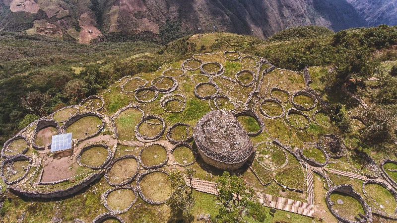 Construcciones circulares al interior de la fortaleza de Kuélap © Daniel Silva.
