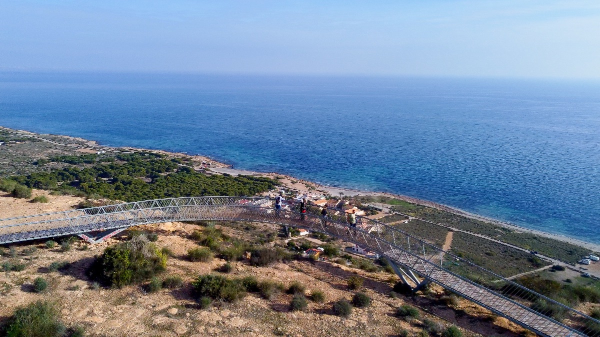 Otra visita imprescindible es el Mirador del Faro, situado sobre un acantilado, con una pasarela elevada que regala panorámicas espectaculares de la bahía de Alicante, especialmente mágicas durante el amanecer.