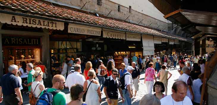 Aquí encontramos las tiendas de orfebrería más antiguas e importantes de la ciudad. La verdadera particularidad del puente está en la primera planta de los edificios; por aquí pasa el Corredor vasariano, un pasillo que comunica el Palacio Viejo con el Palacio Pitti.
